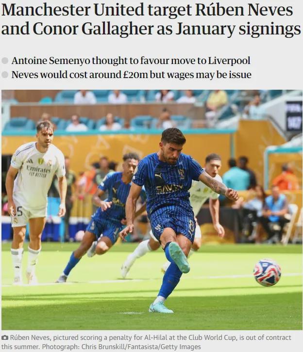JJ指出,阿莫林希望優(yōu)先選擇簽下有英超經(jīng)驗(yàn)的球員,比如內(nèi)維斯和加拉格爾,其中28歲的內(nèi)維斯合同明年夏天到期,一月份簽下他大約需要2000萬英鎊,不過這名中場(chǎng)35萬英鎊的周薪可能是個(gè)阻礙,而且他也有可能和利雅得新月續(xù)約。